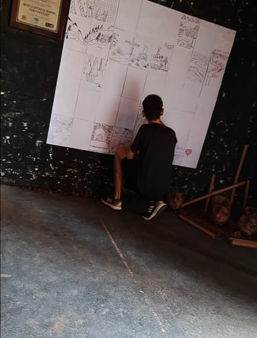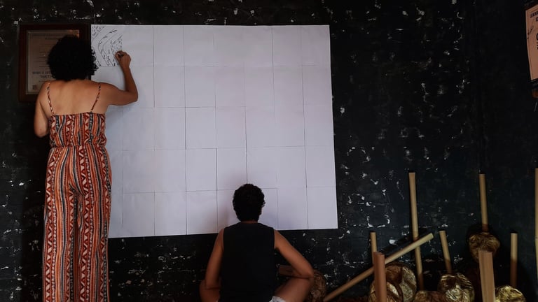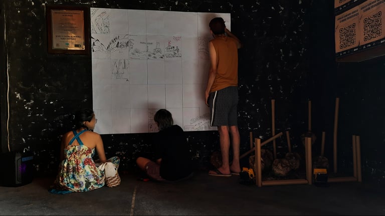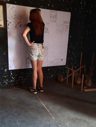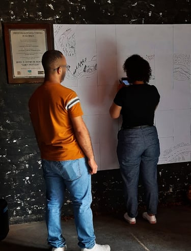 O segundo ambiente foi proposto para que o público pudesse participar de forma mais interativa com a exposição. O público foi convidado a registrar aquilo que mais chamou sua atenção em sua própria trajetória até o local da exposição em uma parede coberta por folhas em branco. O pedido teve como objetivo criar um espaço de compartilhamento de narrativas e trajetórias em uma cartografia coletiva, seja por meio de textos ou imagens (desenhos).