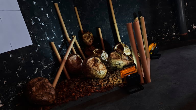 Além dos QR Codes e dos registros cartográficos, compôs à exposição a obra intitulada "Cabeças ao Sol" (2024), criada pelo artista com a finalidade de discutir sobre as condições desumanas a que algumas pessoas são condicionadas ao ficarem horas esperando um ônibus debaixo de sol, chuva e novamente sol, sem qualquer direito à sombra ou abrigo.