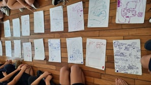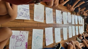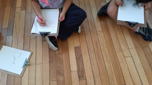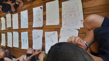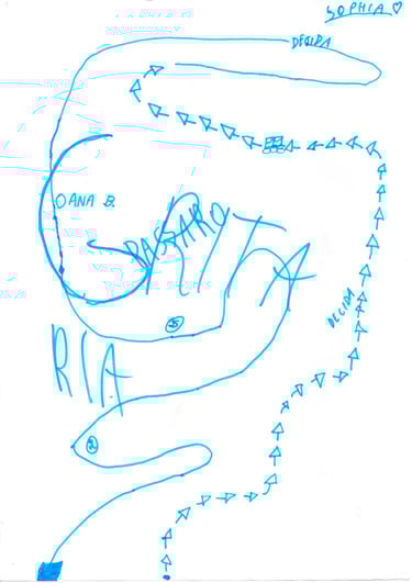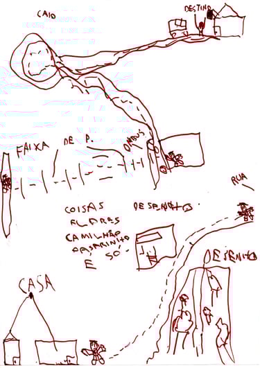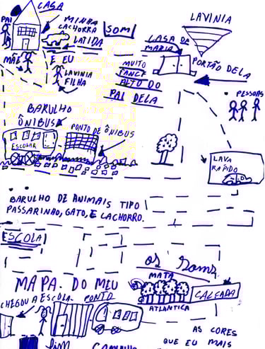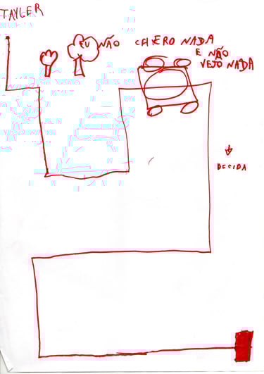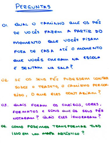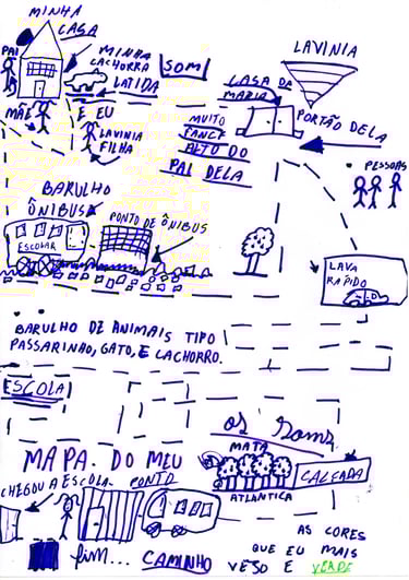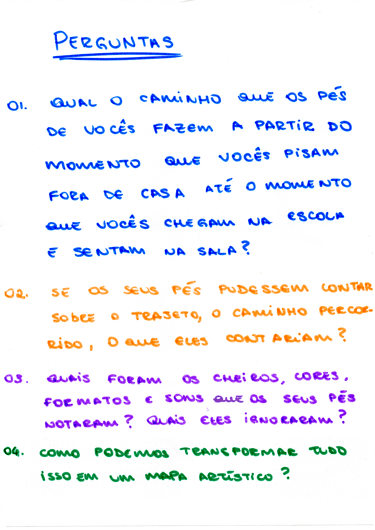 Intitulada "Cartografando Caminhos", a oficina artística desenvolveu, junto aos estudantes do 03º ano da EMEF Prof. Roque Verani, diversas cartografias afetivas acerca do que percebem no caminho que percorrem até a unidade escolar e como isto os afeta. Através de comandos e perguntas, as crianças foram provocadas a pensar e elaborar artisticamente uma cartografia sobre a temática.
